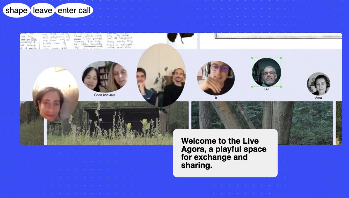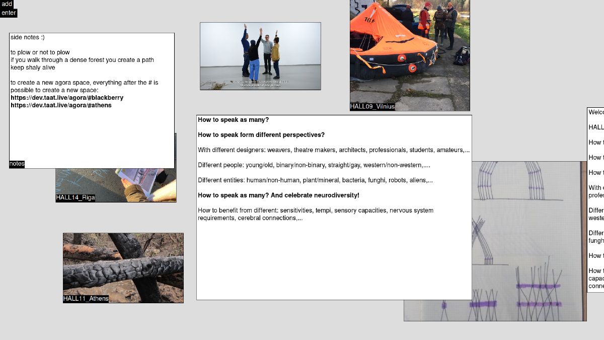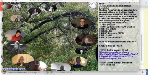 Prototype of a democratic online meeting and live archiving space, designed to support TAAT’s >encounter activism< practice. Participants gather and spatialize: